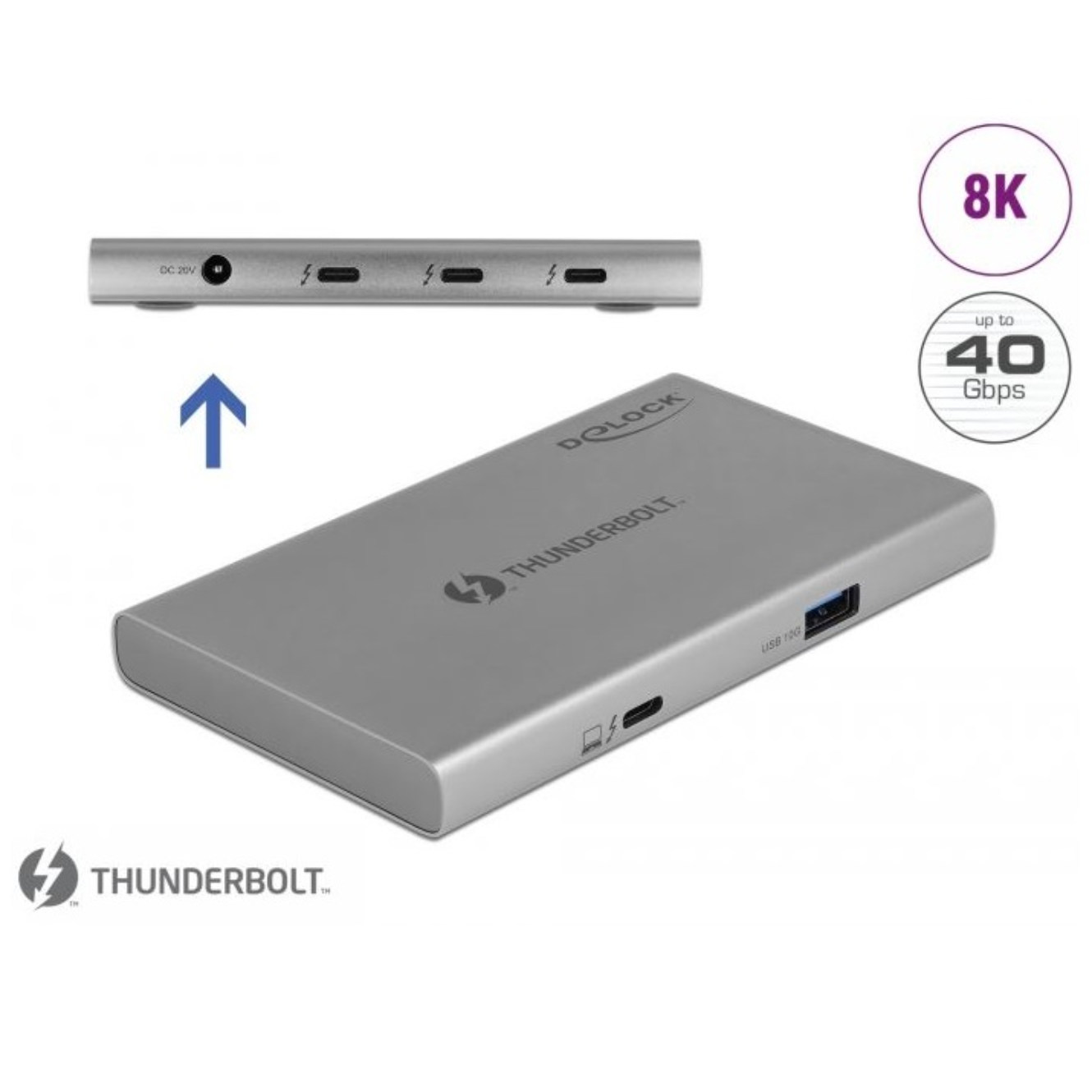 Delock Thunderbolt (64157) 4 Hub 3 porttal és egy további SuperSpeed USB 10 Gbps A-típusú porttal - 8K, új