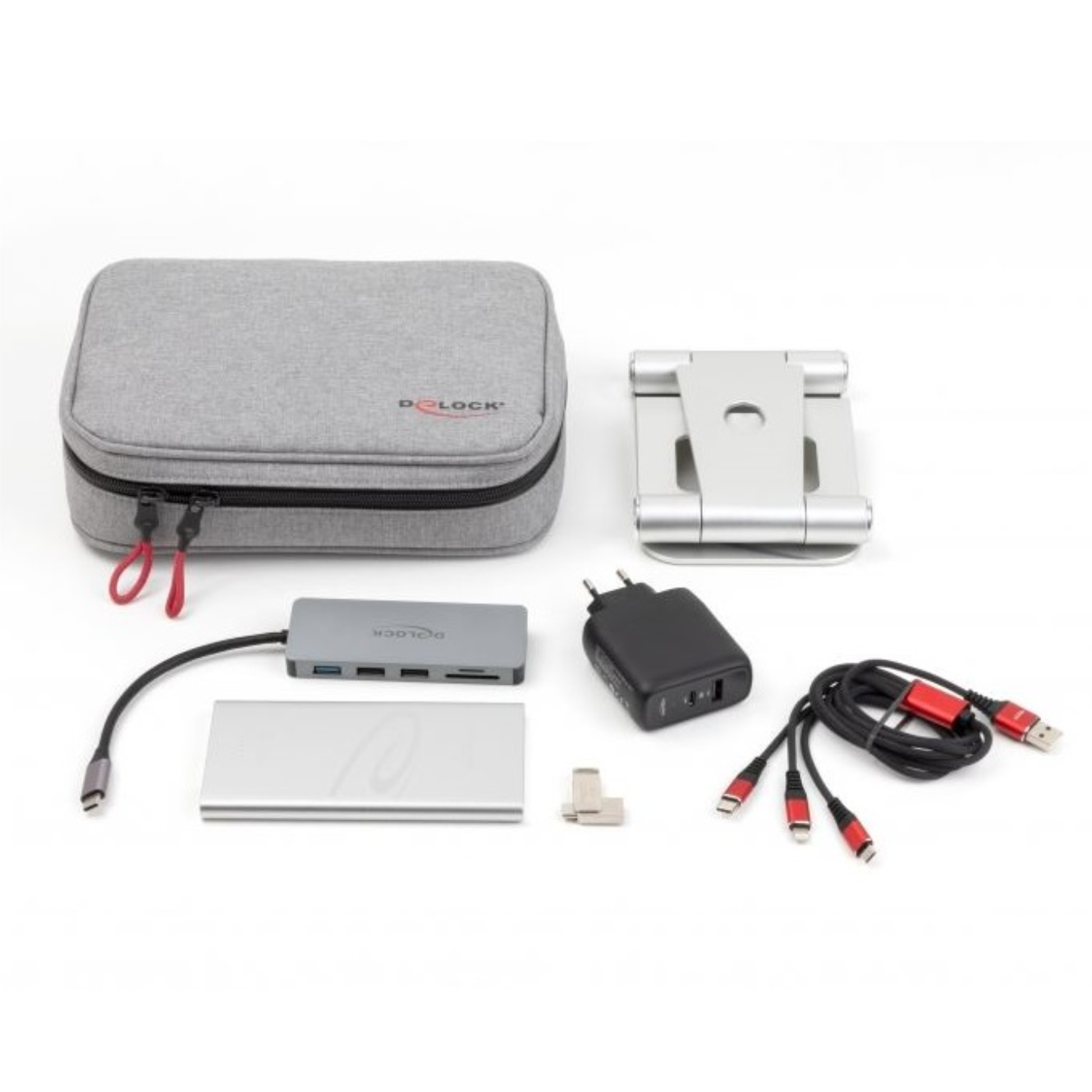 Delock Travel Kit V Tablet Edition - dokkoló állomás / külső akkumulátor, 3 az 1-ben töltő kábel, tartó, USB pendrive, új