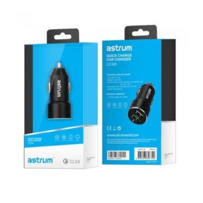 Astrum CC300 prémium fémházas autós gyorstöltő 2x USB, fekete, új